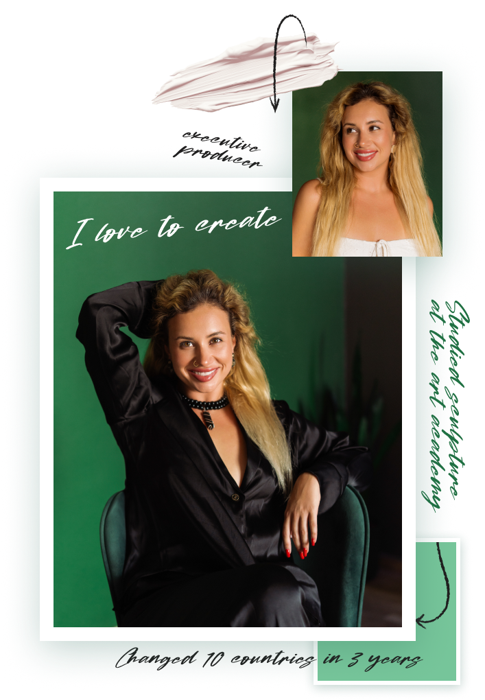 I always maintain a positive attitude and find inspiration in various forms of art. I'm knowledgeable about sparkling wines, a big fan of ballet and Italian culture. I have lived in 17 countries. Each trip enriches me with new visual and cultural ideas that I apply to my projects. Experiencing the world and conveying it through creativity is one of my greatest joys.